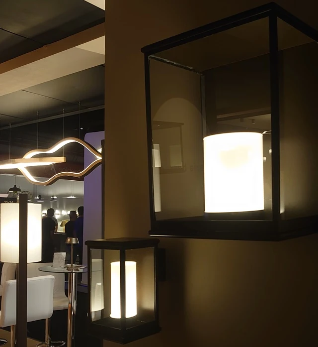 O estande da Evoled estava muito chamativo com sua instalação treliçada feita em perfis pintados com tom madeira! Suas aplicações pareceram infinitas tanto na Iluminação quanto no design de interiores. A Iluminação linear também foi destaque em produtos como pendentes, perfis e sobrepores pretos; arandelas lineares indiretas e postes slim para áreas externas.